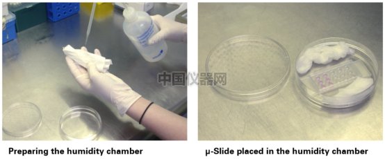 ●將ibidi血管生成載玻片放入培養皿中,蓋上培養皿蓋。